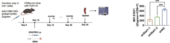 2024年,南京医科大学周文斌、王水等人使用AAV-Ark313血清型并结合DIO系统成功敲低了CD8a-Cre小鼠的CD8+T细胞中的STAT1基因的表达,证实了STAT1在联合疗法中调控T细胞记忆分化的关键作用[6],该研究团队使用的AAV-Ark313由汉恒生物提供。