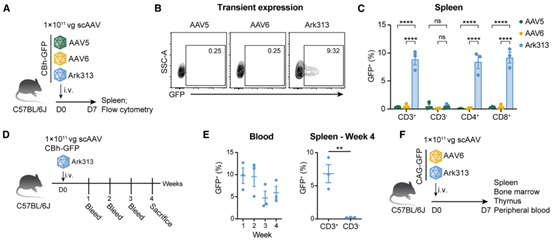 [5] William A Nyberg, Charlotte H Wang, Jonathan Ark.et al. In vivo engineering of murine T cells using the evolved adeno-associated virus variant Ark313. Immunity.2025 Feb 11;58(2):499-512.e7.doi: 10.1016/j.immuni.2025.01.009.