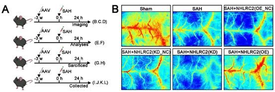 图11是汉恒生物构建的NHLRC2过表达和干扰腺相关病毒,通过淋巴血管内皮细胞特异性启动子LYVE-1启动子调控NHLRC2的表达。通过侧脑室注射aav病毒(5μL/每只小鼠,注射速度0.2μL/min,病毒滴度1x10^12 vg/ml),实现了在小鼠软脑膜淋巴血管内皮细胞(leptomeningeal Lymphatic Endothelial Cells, LLECs)特异性操控基因表达的目的[19]。